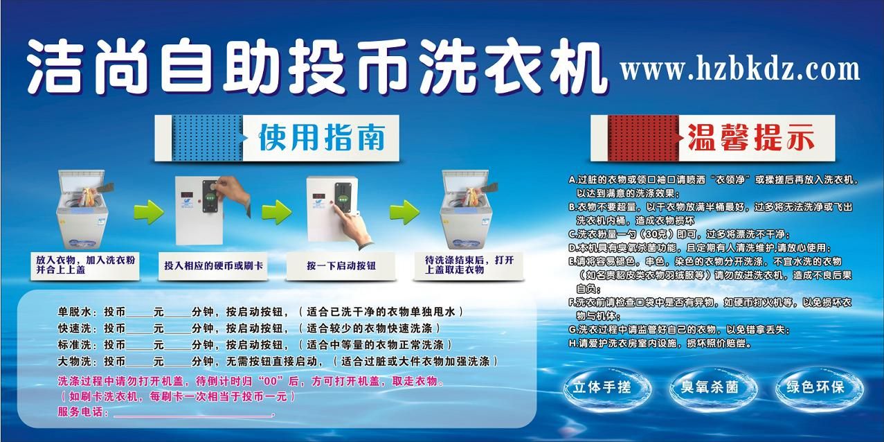 投幣洗衣機使用指南噴繪布80*160厘米